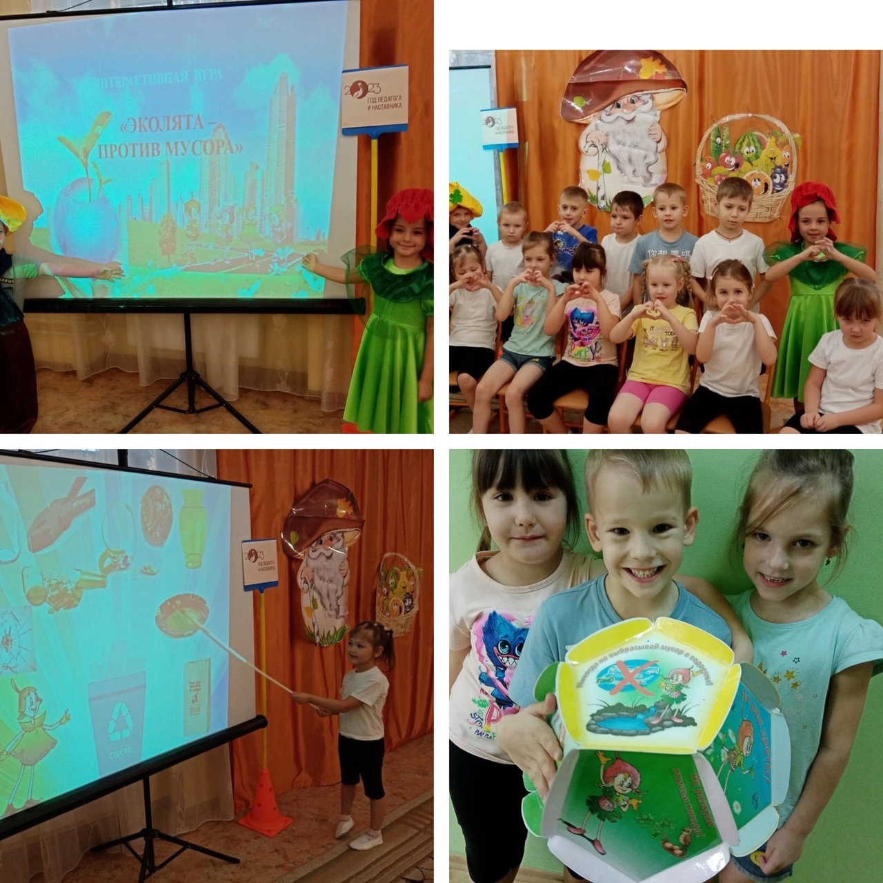 В детском саду № 1 «Теремок» Елочка и Шалун провели со старшими дошкольниками познавательное мероприятие: "Эколята- защитники природы - за раздельный сбор мусора!".
